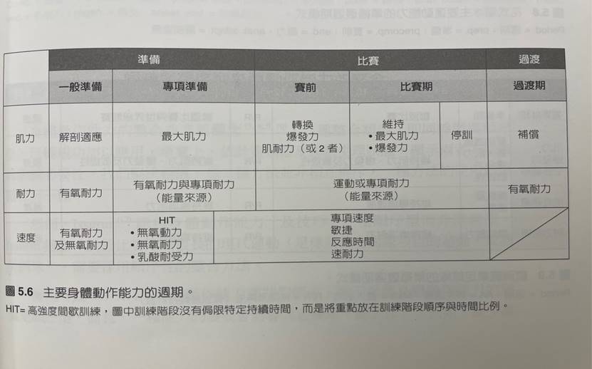 節錄自Periodization,6E 的圖片 (中文譯本為運動訓練法)