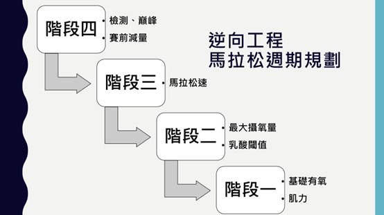 我們從上一個階段推論,從階段一進展到階段二,要發展更多專項訓練,不論是閾值區、馬拉松速、最大攝氧量,強度都不低,那麼在初期要怎麼做 ?